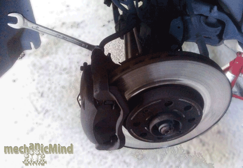 - Inserire la chiave combinata sul bullone presente sul retro della pinza freno e svitarlo.