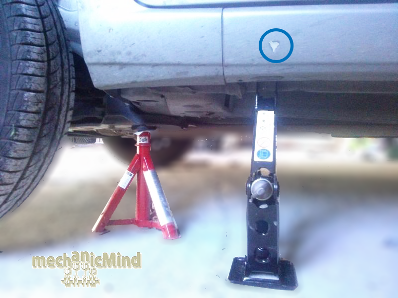 - Inserire il crik sotto al veicolo in corrispondenza dell’apposito segnale (vedi Figura 2).