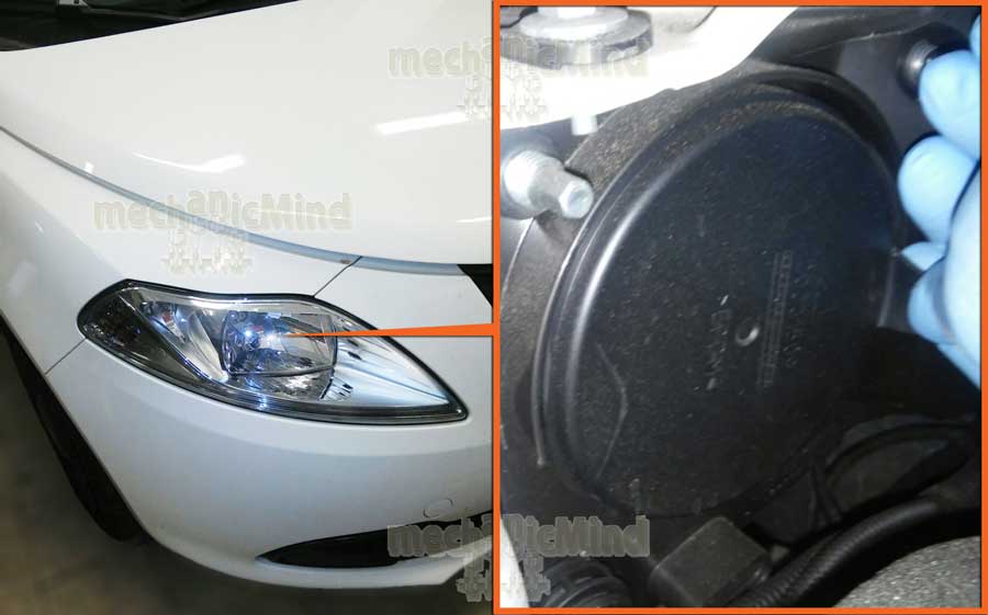 - Solleviamo il cofano ed individuiamo la sede della lampadina.