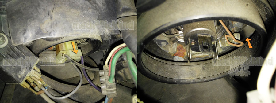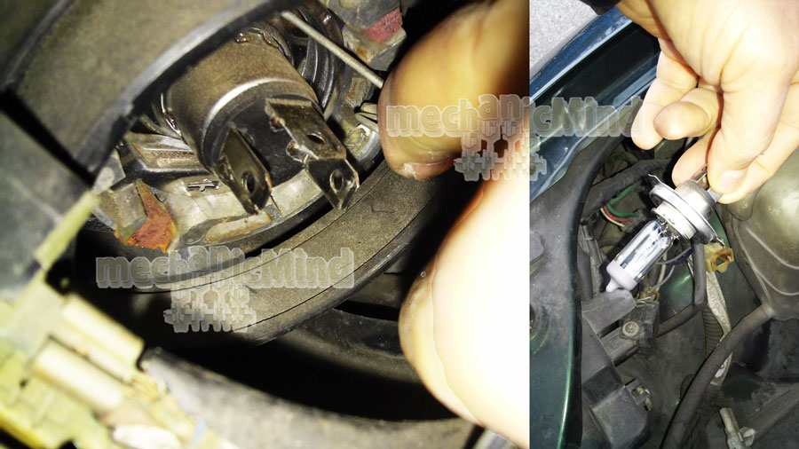 Non ci resta che sfilare la lampadina vecchia e sostituirla con la nuova (avendo cura di non toccare il bulbo di quest’ultima a mani nude). Riposizioniamo quindi la molla con movimento inverso e poi re-inseriamo il connettore.