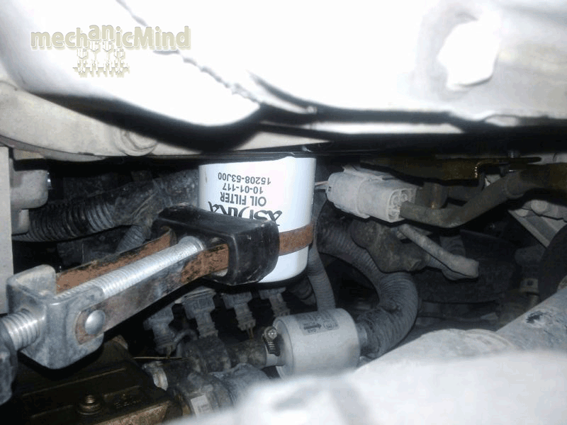 - Sostituire il filtro Olio. Facendo uso della chiave a fascia smontiamo il filtro dell’olio. Successivamente con le mani avvitiamo il nuovo e poi sempre con la stessa chiave diamo la stretta finale.