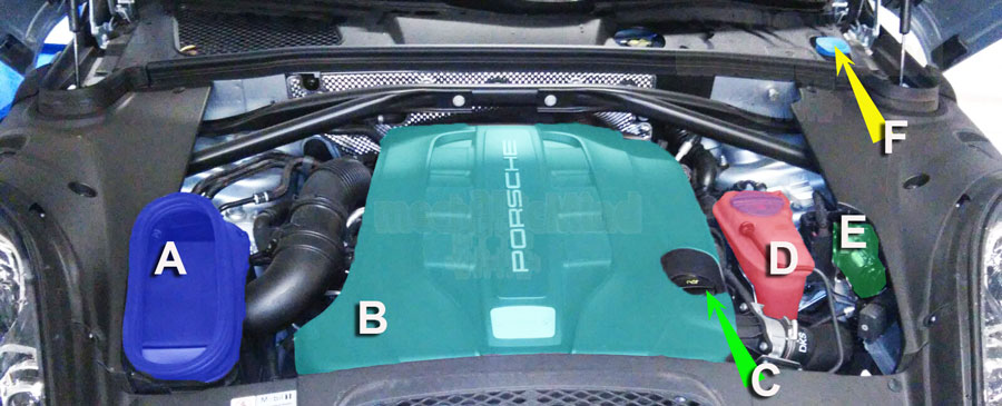 Vediamo assieme quali sono i componenti facilmente riconoscibili osservando il vano motore della Porsche Macan.
