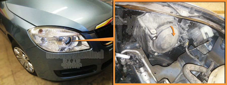 Vediamo come sostituire la lampadina anabbagliante di una Skoda Fabia modello 5J (2007-2014). Il faro monta una lampadina H7. Seguono le fasi della sostituzione: