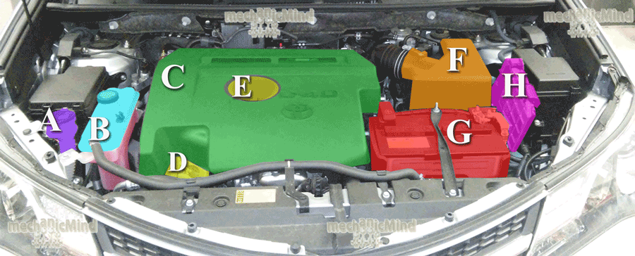 Segue la descrizione del vano motore per una Toyota Rav4 2000 diesel quarta serie .